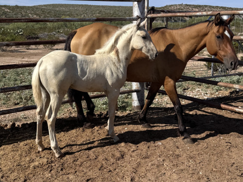 2025 palomino quarter horse filly. Raised outside on a rough country, West Texas ranch. Pending registration with the AQHA. Deposit required to hold the foal until they are weaned.
