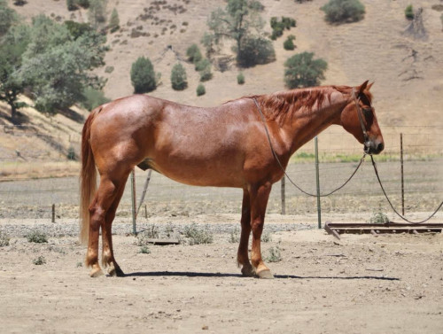 If you’re looking for a family-safe, beginner-friendly all around horse, Bugs is your guy. He’s a beautiful red roan gelding, stands 15.1 hands and is 12 years old with tons of experience. You can trust this horse to take care of any rider. He’s extremely broke and knows how to differentiate riders’ abilities, molding himself to fit whoever’s on his back. For timid or young riders, he’s super careful and cautious. But with more advanced riders, he likes to show off. He’ll walk, trot, and lope with ease, so he’s great for beginners. He can also step it up and show advanced riders his ability to spin, slide, stop, and turn around. He’s truly versatile. Bugs will go anywhere you point him up any trail, over brush, through rivers where he will even swim and across rocky terrain. Bugs is safe to ride bareback, stand up on and crawl all over like a jungle gym. He’s been used on the ranch and knows the ropes. He can take a newbie out and take care of them or be a handy helper for a seasoned rancher. He’s done just about everything: carried flags, tarps, and balls. He’ll tackle any obstacle, bridges, pool noodles, walk over tires – he’s fearless. You can ride him down the highway without worries. He rides alone or in a group, hauls like a dream, ties, clips, and is excellent for the farrier. He tacks up easy and will be the same horse no matter how much time off he’s had. He’s definitely one of those horses you don’t find for often. We call him the jack of all trades because there’s nothing he can’t do. If you want to meet Bugs contact Longhorn Ranch, Dina 831-537-1915. We’re located in Paicines, CA.