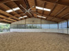 This 10,000 sq ft property is what I would consider a 24/7 facility. The 6-stall barn has spray foam insulation, two roll up doors, and two big fans to keep things circulated in the summer. The stalls are oversized (12x15) and come with automatic waters, which is ideal for keeping everyone happy indoors when cold weather hits. Attached underneath the same barn is an indoor 60 foot round pen with sandy loam footing. High power LED lights are positioned above the round pen. The screened-in round pen looks out onto a valley (golf course) and the back acre of the property.