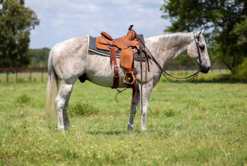 Sammie is a 15.1 hand grey gelding that checks all the boxes! Sammie is as gentle as they come he is one hand broke rides low headed and with ease and doesn’t spook at anything. If your looking for a gelding that is family safe but also broke enough to go do a job if needed then don’t miss out on this guy here. This gelding has been ridden in all types of country and used to work and doctor cattle as well as flag horse in the parades and grand entry, Sammie is completely sound and safe and ready to join your family! Contact Logan with X5 Ranch 903-368-0922 with any questions. Located in Canton, TX.