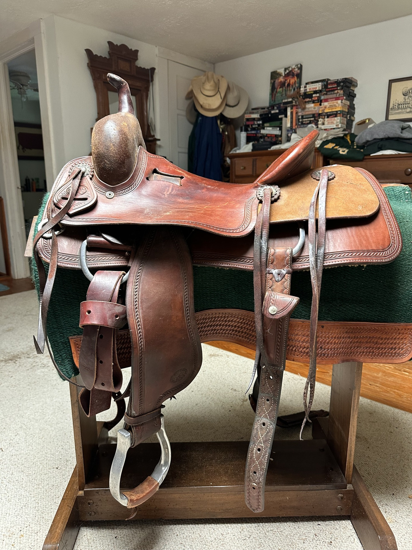 15.5” lightly used cutting saddle by M.L. Leddy. Kept inside house when not in use. Very good condition.