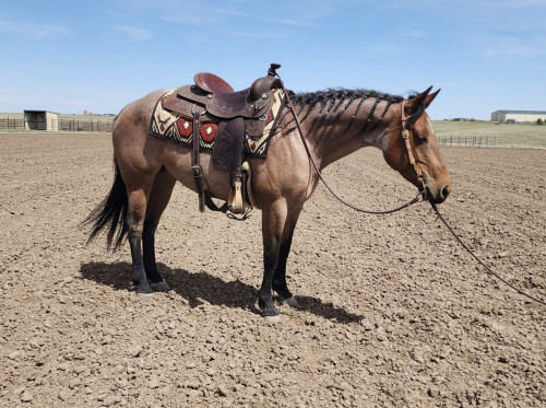 “BXL Peptos Pretty Bay” is a 2020 bay roan AQHA mare standing 14.1 hands. “Willow” is a very athletic mare who always tries hard! She is sired by Peptos Pretty Spoon (Hes A Peptospoonful) and out of Sweet Pretty Pasha (Sandy Cue Tivio). Willow has been ridden by many different people, including a youth rider. She has been used in the mountains for hunting and in the pastures for gathering cattle. Willow is quick on her feet and loves to work cows! She would make an excellent ranch versatility show horse or a lower level reined cow horse. Willow is very eye-catching and always gets compliments wherever she goes! She loads, ties, stands for the farrier, and has no bad habits. She is sound, healthy and ready to be your next winner!