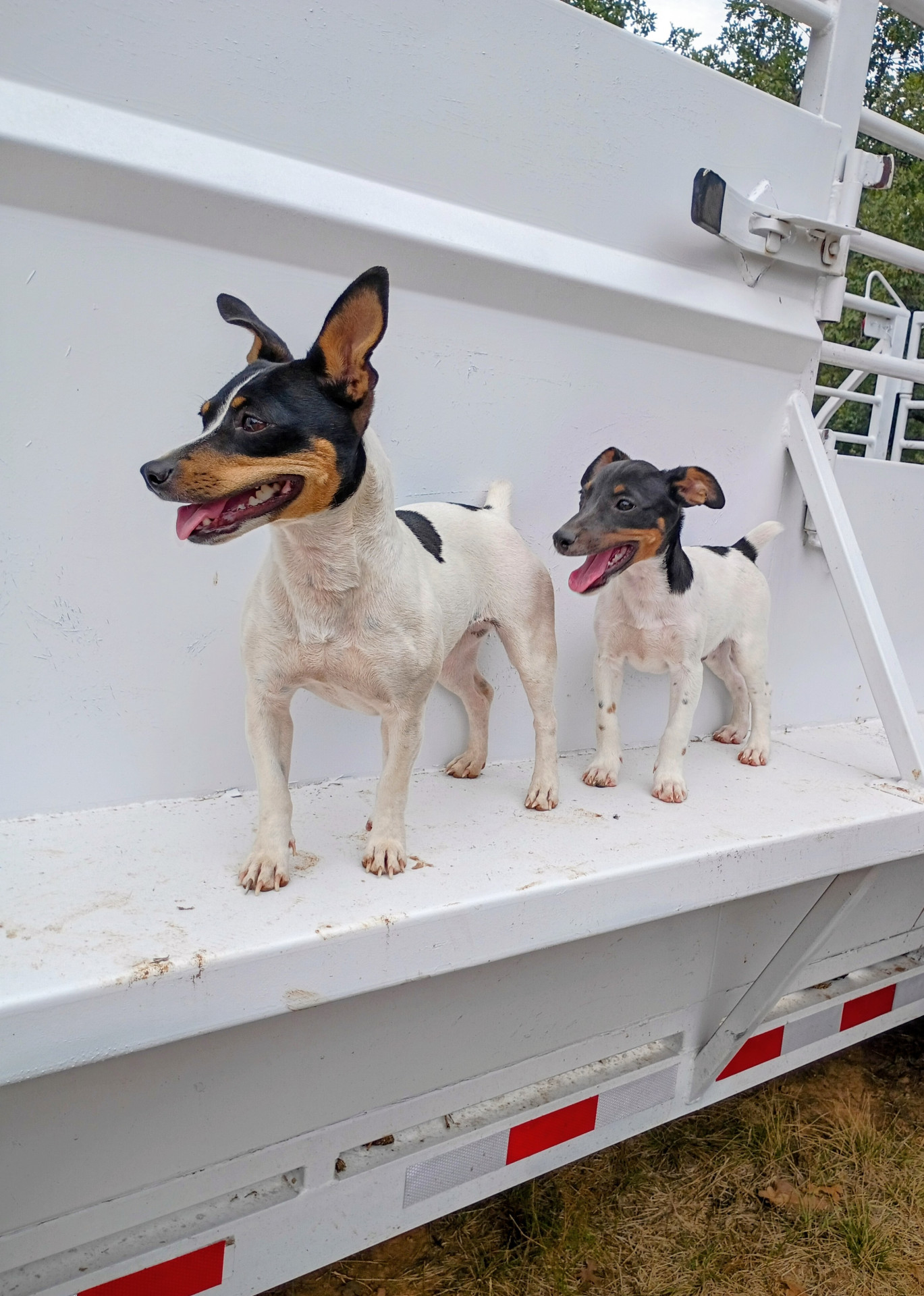 Started potty training and doing great! Leash trained. They have been around cattle & horses, don’t mind them any. Prefer to follow you around while out doing chores & then sit with you in the house for lunch & maybe take a nap.. They do great on road trips, will sit for hours and watch the ropings. Make someone a great companion & travel partner!!