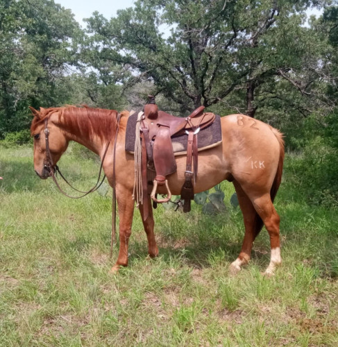 He is Athletic & great on his feet. Smooth in all his gaits. Stands well for the farrier, has had 1 set of shoes. NO buck, catfish has sat for a month or two previously and rode off like a gentleman, no funny business. Has roped a few cattle outside in the pasture. Started tracking calves in the arena. He will track on a loose rein & has been slowly started in the box, the right way. Rides one handed. Really starting to get a nice stop and wants to use his hind end. Knows the word "Woah".. Open gates on him, fish from his back even! Calm with no spook on trails. Walks out great alone, not the type you have to pedal all day. Ties, saddles, loads great. All around a great using size gelding that is ready to go to work for you! NO scars or bumps, great BLACK feet, 100% SOUND and has always been sound. Catfish is a coming 4yr old but he rides and acts like he is 10. Feel free to call or text with any questions, serious inquiries please.