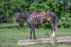 "Trooper" 4 yr. old Gray Draft Cross Gelding. He stands 16 hands and is a big stout crossbred that is super quiet and gentle. He has had lots of outside miles under saddle, lopes nice circles, takes both leads, crosses water & ditches, and has also worked under harness.