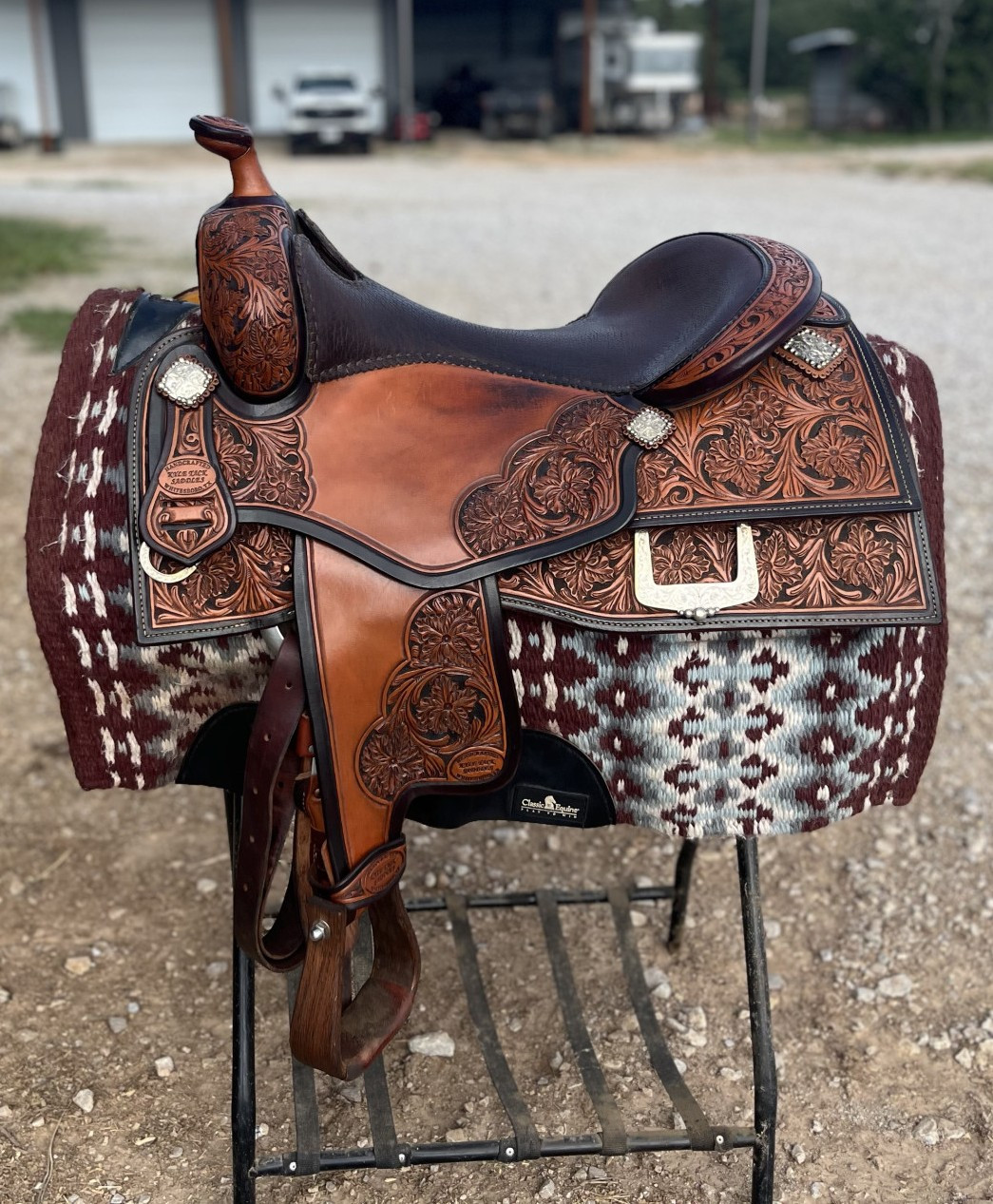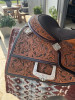 Beautiful tooling with dark stain underlay and corners. Perfect for ranch pleasure or reining