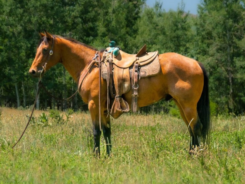 14.3hh. Hutch has done all types of ranch work and is willing to please. He is very easy on the eyes and will turn heads wherever you go. Hutch is enjoyable to ride in the arena, he has a nice handle – picks up both leads and has a nice stop. We have been enjoying riding him this summer on the ranch, on the trails and in all kinds of terrain. We have been using him in the roping pen both heading and healing. We plan to show case him at BLS on both ends. Hutch is good to bathe, clip and shoe as well as loads and hauls with ease. A good all-around gelding that is a pleasure to ride up and down the trail or go get a job done with him. He is versatile, good looking and easy to be around.