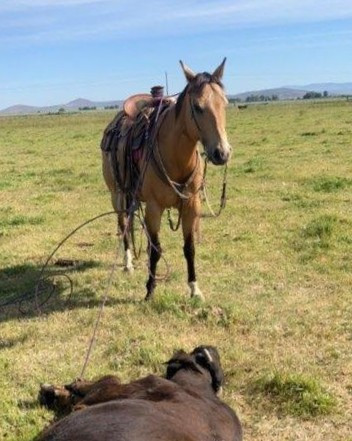 Buck is a beautiful buckskin gelding who is a handy horse to have around. Buck has sorted, branded, doctored, and gathered cattle his whole life and has no issues doing it all day.