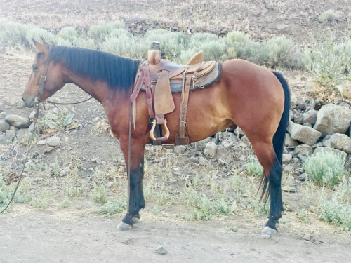 Bradley has been ridden in steep, rocky country. He is a well built, stout gelding that can go all day. He has the potential to make a really nice horse in any discipline with more time and consistency.