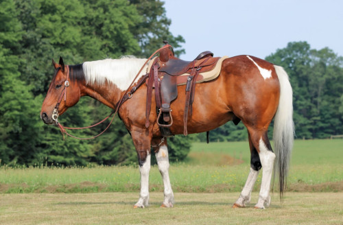 Chico is a 12 Year Old Bay and White Paint Gelding. He stands 15 hands tall and is very stout made. He is built to carry any size rider. He stands beside the mounting block making it very easy to get on and get off. If you been looking for that super quiet and super gentle horse that anyone can ride and get along with then check out Chico. He is very quiet and gentle and is a great family horse. He has been primarily used as a family trail horse and has been used to go out and gather the cattle also. He is more whoa than go. If your a beginner or a timid rider Chico will help you gain your confidence and teach you to ride. If your a seasoned rider but just want a nice horse to have relaxing stress free rides on then Chico would be perfect for that. Chico is great on the trails and will go anywhere you ask him to go on the trail and never hesitates. Chico can be trail ridden alone or with other horses. He is traffic safe and good around four wheelers, tractors and other equipment. He has good ground manners and is good for the farrier and vet. Very friendly and easy to bond with. You will love how quiet , gentle and safe he is. Dont miss out on Chico! We can help arrange shipping anywhere in the United States . Call or Text Kris at 814-229-3290. Thank you and God Bless