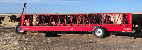 Portable hay feeder. Good condition. Can fit 2 4x8 bakes or 3 rounds if put in just right. Tires are good.