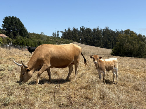 Nice young pair. Cow is 3.5 years old with a bull calf at her side. Cow is registered with the TLBAA, calf is eligible for registration as well.