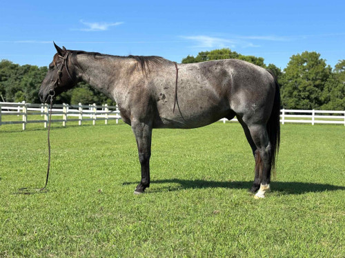 Hollywood is a 2018 model blue roan quarter horse gelding. He stands 15 hands tall and is built like a tank. Hollywood has been ridden all over South Georgia and is an absolute blast. He will walk through water and over logs and anything else in his path without hesitation. He will ride off alone, or with a herd. He will walk into water and over obstacles before thinking twice. He is super broke and always willing to please. Hollywood would make a great kids horse as he is extremely gentle. He is the most level headed I’ve ever owned and doesn’t spook at anything. Hollywood can be ridden bareback or with a saddle. He stands for the farrier and to be saddled and takes a bit with ease. UTD on coggins and vaccines. Contact Andrew Dismuke 229-347-7687 with any questions. Located in Dawson, GA.