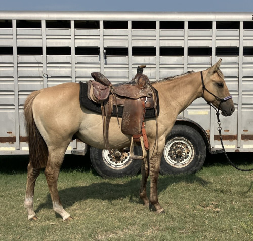 “Festus” is a very quiet smart good looking grandson of Playgun. He is always striving to please. All the ground work is done. He loads well! He stands for the farrier. I’ve put 5 rides on him bare back in a rope halter. He’s never offered to Buck or shy. He should mature around 15 hands. Festus is ready to go in any direction you want to take him. If you have any questions, or want to see some videos please call or text 785-476-8046.