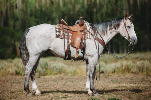 Rowdy is a good solid 15.2 hand gelding with a lot of ability. This big grey gelding will work great for a rancher, trail rider, roper, or will happily be a "go-to-the-mountains" kind of horse. He rides well in the arena, good outside and will go where you point him. Rowdy is a big easy-moving gelding who is built to last. He is sound and sane!