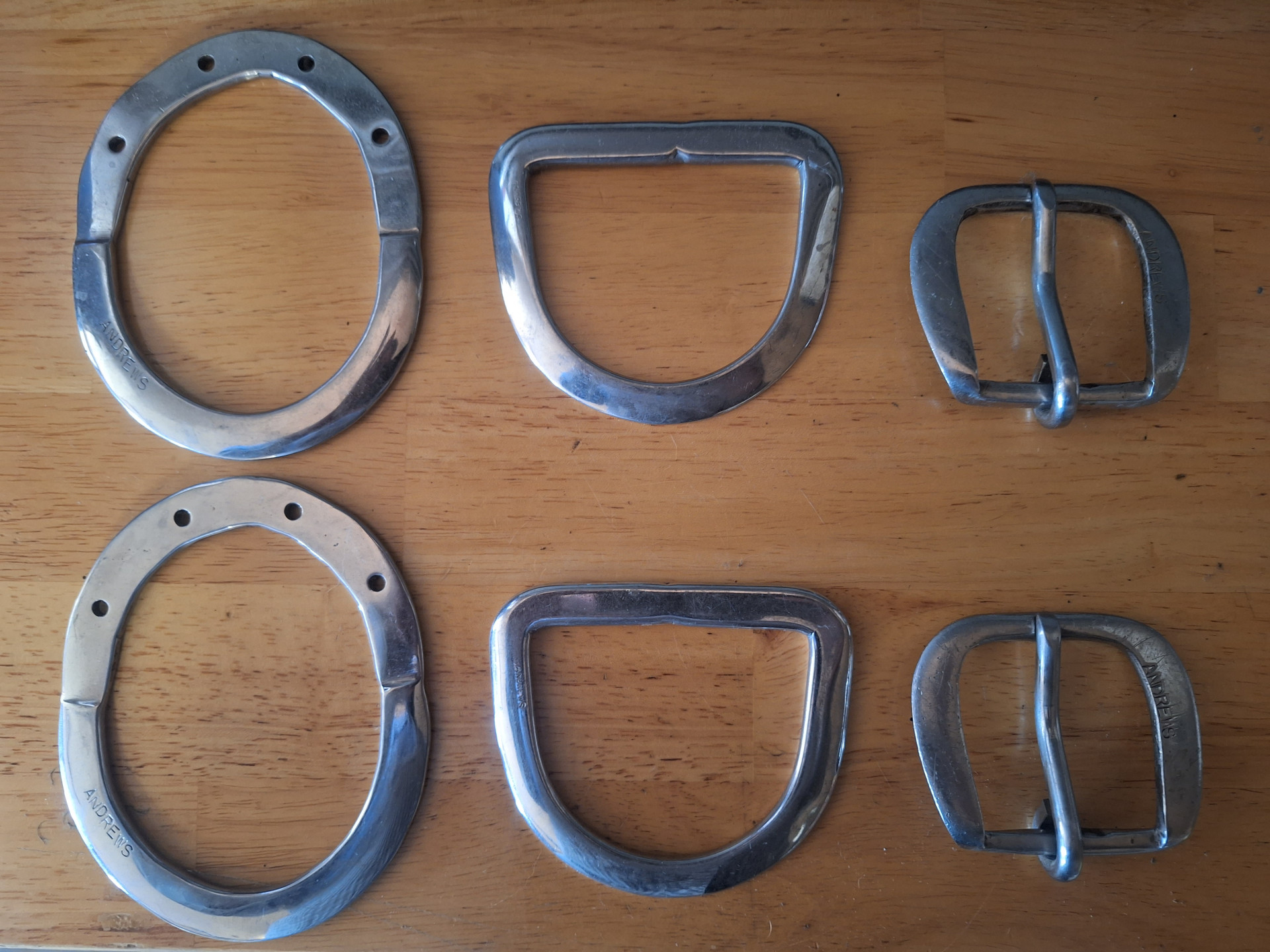 Great set of hardware by David Andrews. Inskirt front d’s measure 3", rears are 3", flank cinch buckles are 1 3/4". Good set that I’m not going to get used.