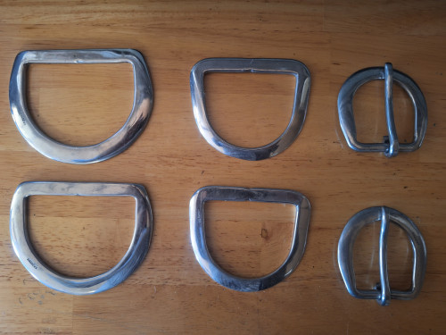 Nice set of hardware. Front drop d’s are 3 1/2", rear are 3", and flank buckles are 1 3/4". Good set that needs to be put to use.
