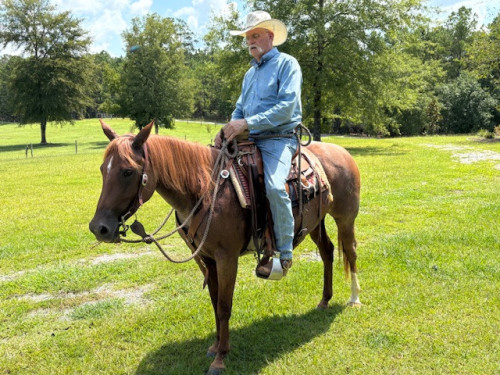 Born 4/1/19 6yr old mare started well, good demeanor, calm. She can work cows, drags logs/tires, follows cows well. Sound, have had children on her. If you want a good horse to work cows or trail ride, she will do it. If you want to take her to the next level you have a good foundation. I learn mostly from Buck Brannaman and Buster McClaury.