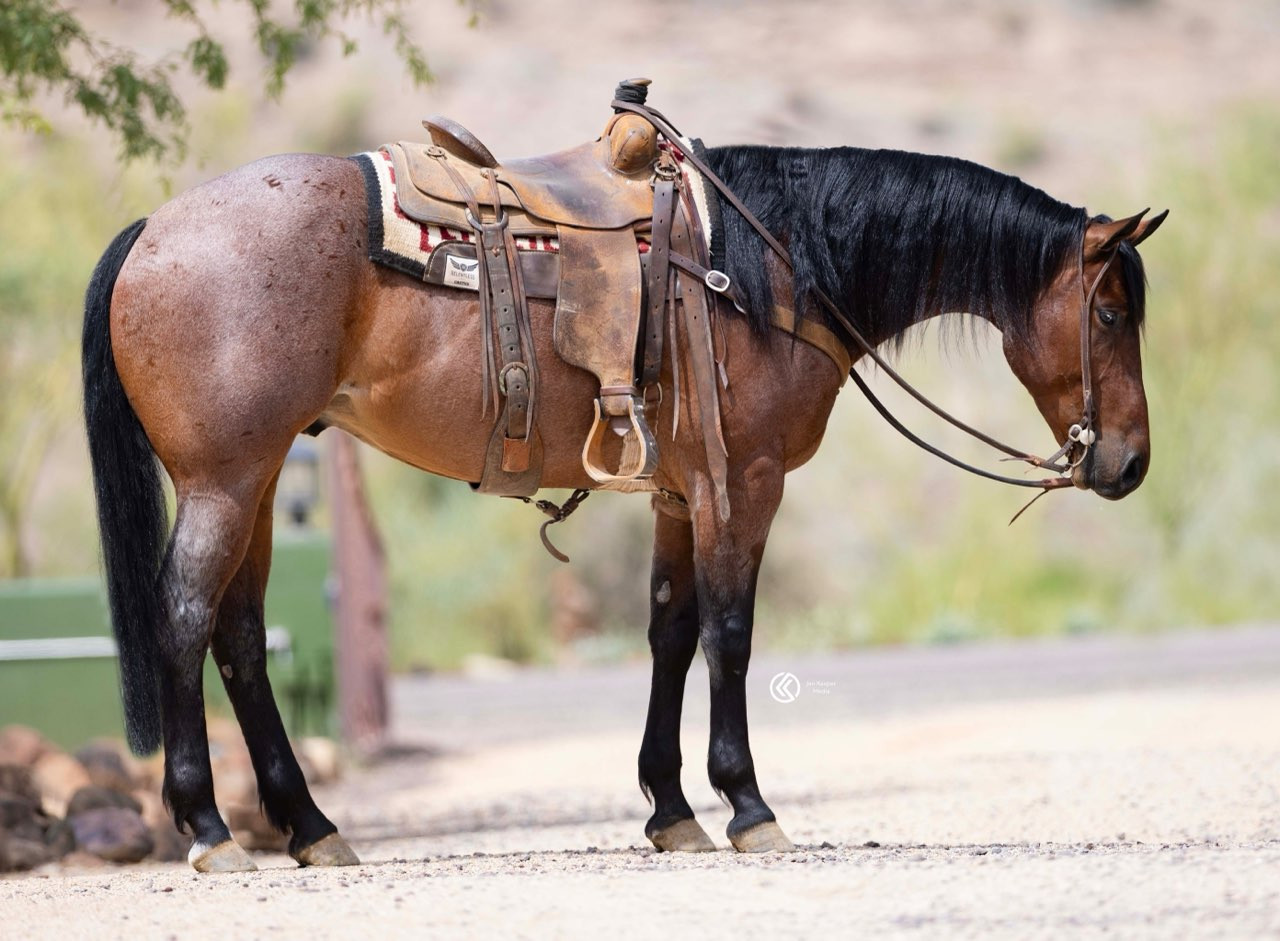 Meet DD Mr Peppy Red Buck, a 5-year-old bay roan gelding standing 15.3hh with the looks, mind, and ability to do it all. He’s Riata Buckle eligible and ready to haul, with a solid foundation that makes him a great fit for someone wanting to step into the rope pen or show pen. He’s been used extensively outside for all aspects of ranch work in big, rough country and handles it with confidence. Fancy broke with all the buttons, he’d be a standout in ranch versatility or just as impressive heading down the trail. Gentle, sound, and clean-minded with no bad habits — this one checks all the boxes. FMI 580-471-5914