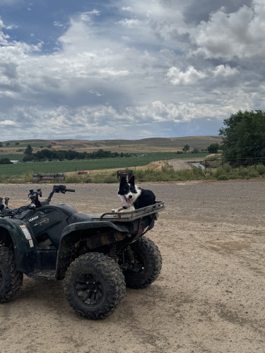 Tucker is a 2 year old register male Border Collie. Started on cattle. Very energetic. Loves riding on four wheeler or pickup. Kennels up nicely. Call Roger for more info or videos. 541-2 0ne 6 -3 two 3 six