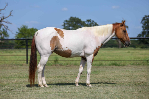 Meet SCOOBY! He is a 14.3hh, 10-Year-Old Chestnut Tobiano Paint Gelding. This handsome gelding is the total package – safe, gentle, and easy on the eyes. Standing at 14.3 hands, he’s the perfect size for both adults and youth. At 10 years old, he has the experience and steady mind to make every ride enjoyable. He’s extremely gentle and dependable, making him suitable for riders of all levels – from beginners wanting a trustworthy partner to experienced riders looking for a fun, uncomplicated horse. He rides quiet and consistent, with a smooth way of going and a willing attitude. Not only is he safe, he’s also a real looker – a beautifully marked paint with a kind eye and classy build that always gets attention. Whether you’re riding down the trail, in the arena, or just enjoying his company in the pasture, this gelding is as easy-going as they come. If you’re looking for a pretty, people-friendly gelding that anyone can ride, this one checks all the boxes! Located in Canton, TX. Contact Bailey at Slaton Saddlery 903-288-1555 with any questions.