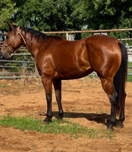 Horses For Sale: 2022 AQHA Bay Filly – Wimpys Little Step × Shining Spark × Nu Chex To Cash #201362