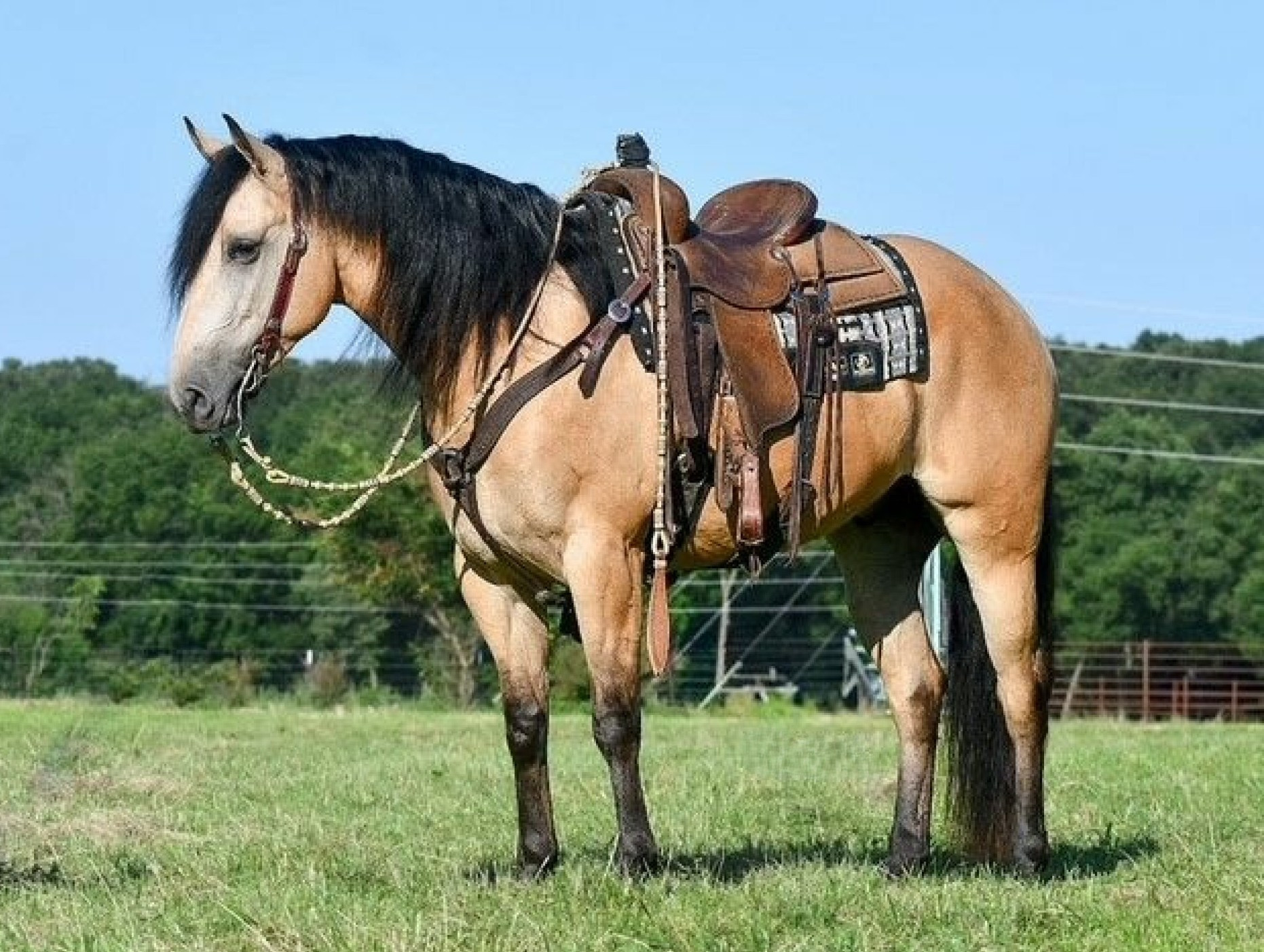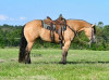 Take a look at this Big Guy! ‘Buzz’ is a beautiful buckskin gelding we had around since he was just a baby. Buzz was used on the ranch for spring and fall roundups, dragging calves and just riding around the ranch. We had Buzz on big group trail rides and out west in the Big Horn Mountains and down our county roads and he is a blast to ride. With his buckskin color and long black mane and tail he will get you noticed whether you take him down the trail or to the horse show. Buzz takes both leads easily and has a smooth trot and rocking chair lope and has those cool button that are handier than a pocket on a shirt, neck reins and has good stop. We enjoyed having Buzz on our ranch and we hope he finds his forever home with the lucky buyer who ends up with him! Sells 100%.