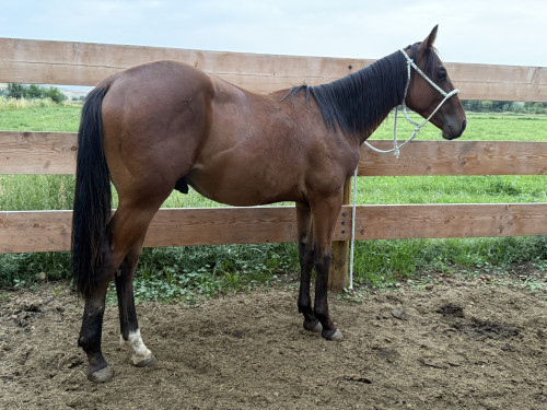 His sire has been used branding, gathering, roping, and picking up bucking horses. Dam was shown in local cutting and reined cow horse shows. 3 year old full brother has been started on the roping dummy and is excelling in his training.