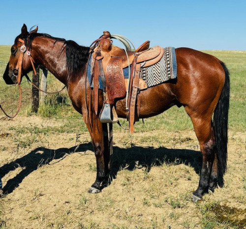 This sharp young gelding has all the right buttons and the kind of mind you want in a prospect. He’s been started right - already seeing jobs like gathering, sorting, and working colts. Gentle on the ground, easty to handle, and good around a rope, he has the foundation to go anyway you want.