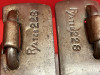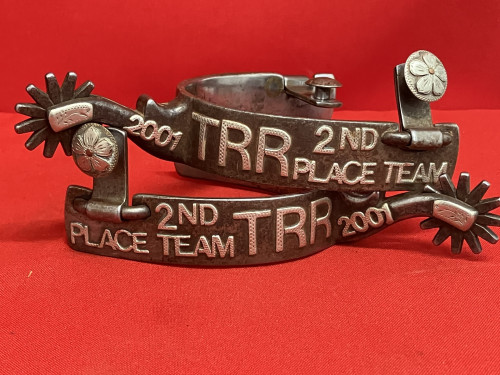 Spurs by well known spur and bit maker Russell Yates. Marked with his RYATES 228 and in good used condition with 1 1/4" rowels, 2" shanks, 3 1/4" heel openings, 1" bands. Texas Ranch Rodeo spurs by the long time Texas maker. He is a former member of the TCAA. We pay shipping within the 48 states. We accept most forms of payment.