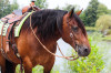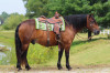 Bear has the best ground manners, is easy to catch in the field, and gets along with other horses. He stands for saddling, bathing, and for the farrier. Currently, Bear is barefoot and does not require shoes.