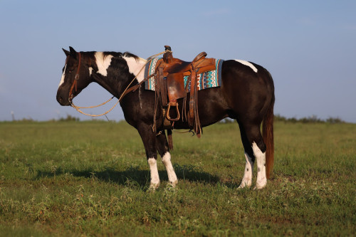 Meet Ted, a seasoned black and white paint gelding who is the definition of a dependable ranch partner. This older gentleman’s horse is as solid and trustworthy as they come, with years of real-world ranch work under his belt. He’s a veteran at doctoring sick cattle, branding calves, sorting and penning, and loading trucks—always steady, always reliable.