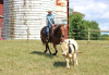 Ranger is very broke in the arena and a pleasure to ride. He will walk, trot, and lope willingly, carrying himself softly on a loose rein. He is easy to get going but not overly forward, making him both responsive and steady. His true one hand neck rein allows you to guide him with the lightest touch, and his willingness to ride bridleless and bareback shows his solid training and quiet mind. He is also an exceptionally comfortable ride, with smooth, naturally balanced gaits that make long hours in the saddle a true pleasure.