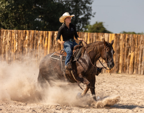 Ms Kitty is a great first performance horse for a youth or beginner wanting to enjoy the amateur reining or transition into the ranch riding. Ms Kitty is easily maintained at home, does not require a program, stalling or any high maintenance. Ms Kitty is currently being used in our lesson program as well to teach beginner children how to lope as she is easy to maneuver, and transition into her slow, smooth and easy lope! She is beyond forgiving and easy to get along with! She will also leave the arena and go trail ride, cross water, bridges and more! We even rode her through traffic and in town! Ms Kitty has also been exposed to cattle, so helping gather on the ranch is just another thing you can enjoy doing with her!