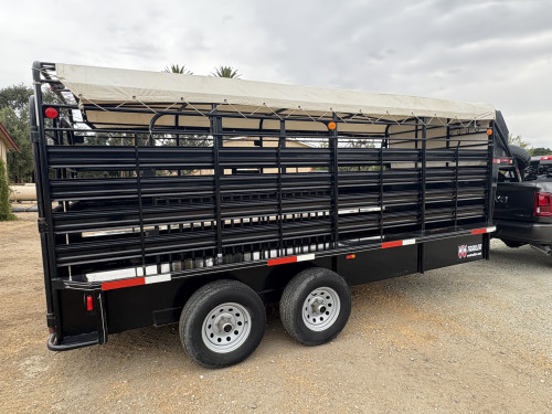 WW 6x16 Stock Gooseneck Pipe Trailer with Tarp, Mats, Custom Box, Bridle Hooks, Center Gate, Spare Tire.