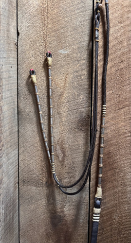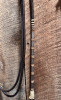 These reins showcase Ortega’s refined rawhide work with crisp braiding, elegant silver, and beautifully crafted popper accents. Signed by Luis Ortega and Susan Nielson. Outstanding condition with virtually no wear.
