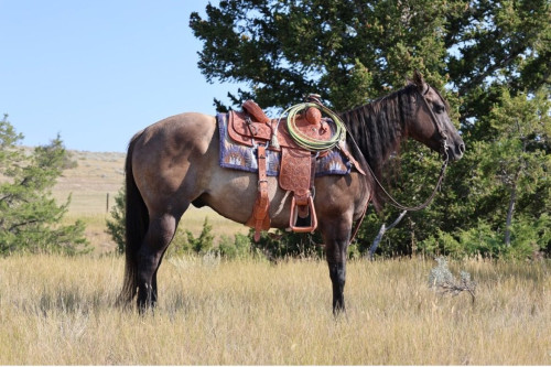Smoke is a great gelding with a lot of talent. Been ridden lots of miles outside working on a big cattle ranch here in Montana. Smoke has been shown in Ranch Horse classes and has exceled. Has a smooth turn around, flying lead changes. He does have a small bump on this right leg that does have xrays and is 100% sound on it.