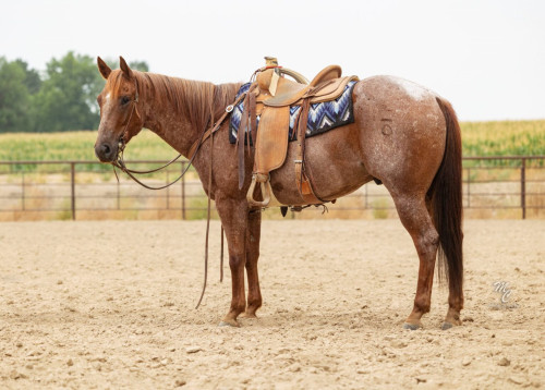 Horses For Bid at Auction: POCO RHONDO RUSTY – 2021 AQHA Red Roan Gelding x Blue Boy Leroy x Whipp Hancock Leroy out of Miss Otoe TurnATrick x Poco Cow Boss! SOLD #202377