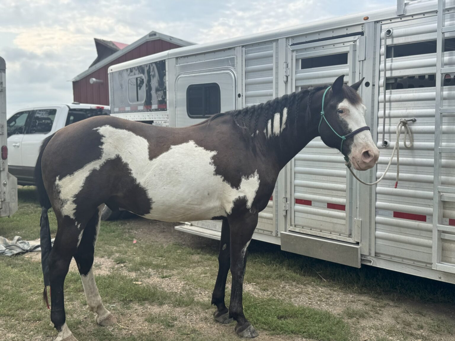 Horses For Bid at Auction: PAINTED ROYAL ROBIN – 2015 APHA Black Overo Gelding x Ima Scenic Driftwood x Colonel Coosader out of Robins Royal Phoenix x Allen Lee! SOLD #202385