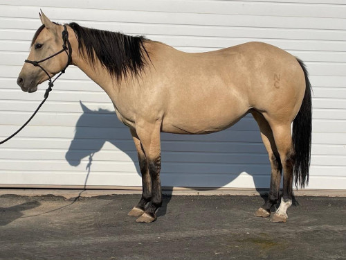 Horses For Bid at Auction: PABS BUTTERMILK ROSE – 2019 AQHA Buckskin Mare x Poco Pablo San x Pie Seen Us Pablo out of Zeniles Praire Rose x Tivios Jess King! SOLD #202386