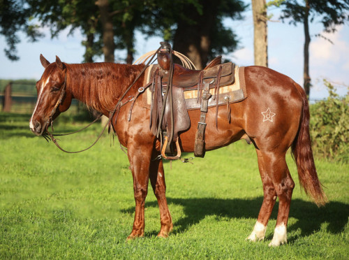 Horses For Bid at Auction: HI ON STEVIE S8 – 2021 AQHA Sorrel Gelding x Stevie Rey Von x Metallic Cat out of Fulla Looks x Dual Rey! SOLD #202429