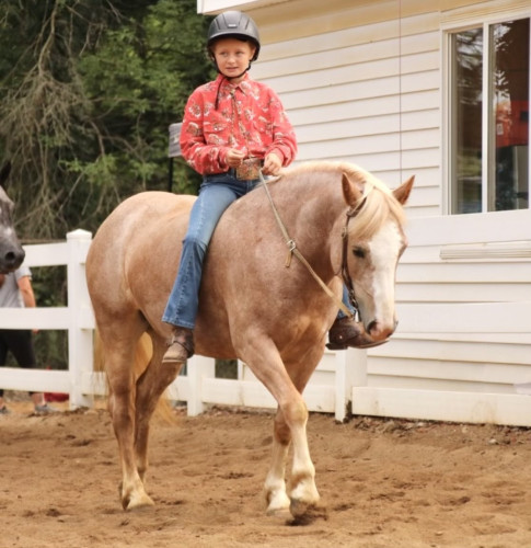 Gypsy is one of the fanciest ponies you will ever see. She is a coming 6 year old red roan pony standing 53 inches- 13.25 hands. We have owned Gypsy since she was a yearling. She has been shown at the county fair for the past 3 years. She will do every class there is. From rail classes, halter, speed, bareback, trail, and costume. Gypsy has been the Champion All-Around Pony the last 3 years. The summer of 2025 Gypsy was shown by our very timid niece and she won her very first belt buckle. Gypsy is perfect for any age child or ride ability. She will only go as fast as you ask. There is nothing Gypsy hasn’t seen or done. She has also been ranched on in Oshoto, Wyoming roping and tagging calves. She is the perfect size for any adult to not have to dismount to tag a calf. Just pull the calf up next to you and reach down. If that’s not your style she will stand to doctor the calf and is not afraid of a bawling momma cow. If you want dependability, safe, durable, and pretty you can’t go wrong with her. Whether you’re an adult or a child Gypsy is your DREAM pony. Sound-Safe-Sane. Great with the farrier. Goes barefoot or will wear shoes. Only reason for selling- kids moved on to faster horses and we can’t keep them all.