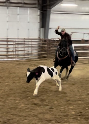 Annie has been used on the ranch, breakaway, heel and tie down. She is well built, stout and very sure footed. Tucker has used her on the ranch and as a practice horse. She covers country and will go all day. She does have some go so not suggested for green riders. She does have a scar on her hind foot that we keep shoes on when using her hard.