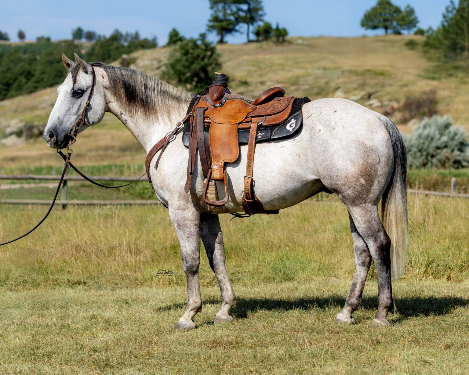 Horses For Bid at Auction: CG COWBOYGUN LENA – 2015 AQHA Gray Gelding x Cowboy Gun Fire x PG Dry Fire out of Poco Tigger Lena x Docs Tigger! SOLD #202500