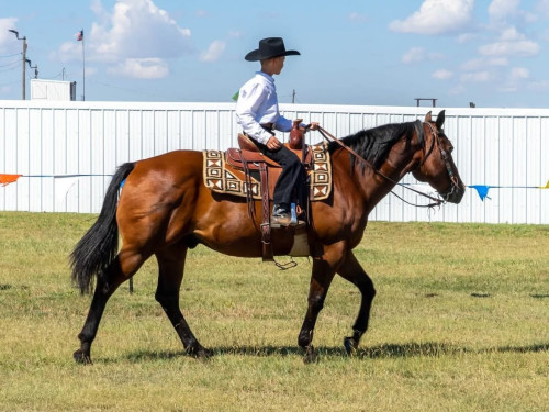 14.3hh. Captain is a gentle, beautiful, dark, bay gelding and has that gorgeous, shapely quarter horse look! He is a great size for adults and youth, and stands 14.3 hands. He is an in-your-pocket type of horse that loves to be loved on, very personable, and is easy to catch, shoe, bathe, and clip! Want to jump on bareback, swim in a pond, or just hang out, he’s cool with all of that! He has no spook, buck, bite, or kick. He has been around traffic, dogs, chickens, kids, cats, side-by-sides, and anything in-between. Nothing bothers him! We have used Captain in parades, 4H, ranch work, and trail riding. Before he came to our home he was used in high school rodeo team roping. Captain requires maintenance for heavy riding due to arthritic front knees. He also has a saddle mark on his right wither as well as a superficial wire scar on his left front pastern (this scar does not affect his soundness). He has that highly sought-after beautiful slow trot, and smooth slow lope. Captain has a nice one-handed neck rein and responds well to leg pressure. He is not a dead-head, but prefers to take life slow! Captain does have arthritic front knees, and requires maintenance for heavy riding.