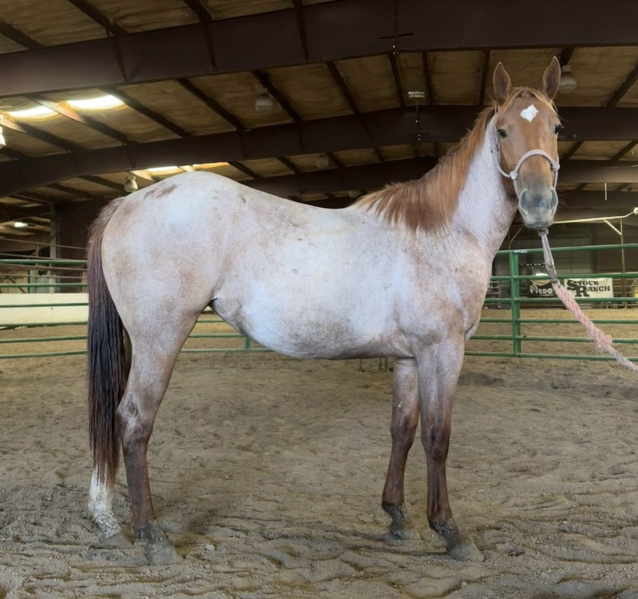 Horses For Bid at Auction: CANDIED BERRIES – 2023 AQHA Red Roan Mare x Huckleberry Finagan x Golden Dually out of Cool Candy Cash x Huckleberry Finagan! SOLD #202507