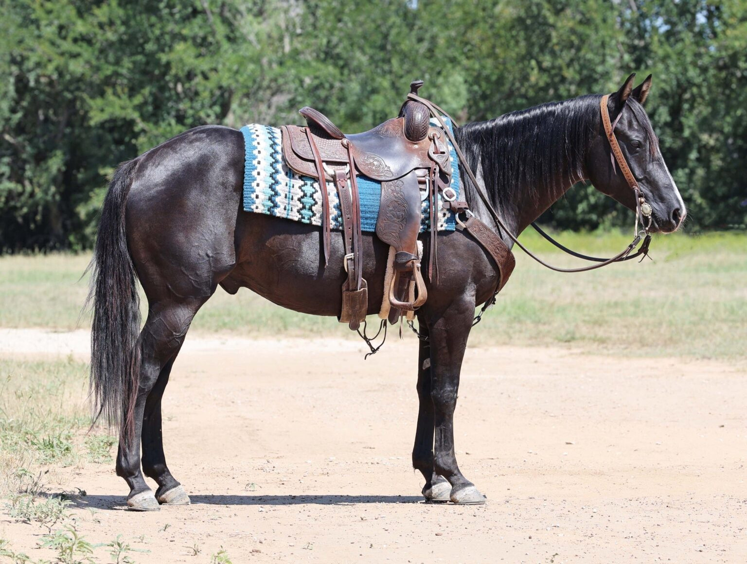 Horses For Bid at Auction: CAMELOT TRAPPER – 2020 AQHA Black Gelding x Trapper Jess x Trapper Cat out of Camelot Clabber Girl x Two M Extra! SOLD #202509