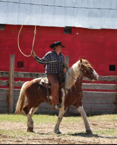 Standing 16.3H with enough ass to pull a Peter Built, Big Chief is up for any task the ranch can throw at him. He is a gorgeous gelding that will turn heads everywhere he goes. With a motor to go all day, every day he makes covering the rough country of central Wyoming easy. He has been used as a practice head horse all summer and has proven himself. He can be skittish on the ground but with an experienced rider he will make someone a heck of a horse.