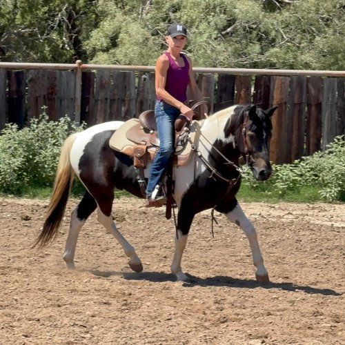 This is Martini 6yr old 14.2h stout built black and white paint gelding. Good handle, good stop. He is gentle and rides well, rides down road, been rode thru obstacles, in large pastures. Rope dummy, carry flag, pull log. Great with other animals and in large mixed herd. He is super cute, well cared for good with farrier. UTD on all $6800 Weatherford, TX call or text 254-433-0806 videos are on our website cowboy4sale dot com. We offer shipping let us know if you need a quote. Most people we sell to buy sight unseen off our videos alone – so enjoy watching them and getting to know the horse or pony. We can usually ship your new horse/pony to you fairly quick. We have several ponies and horses available at all times.
