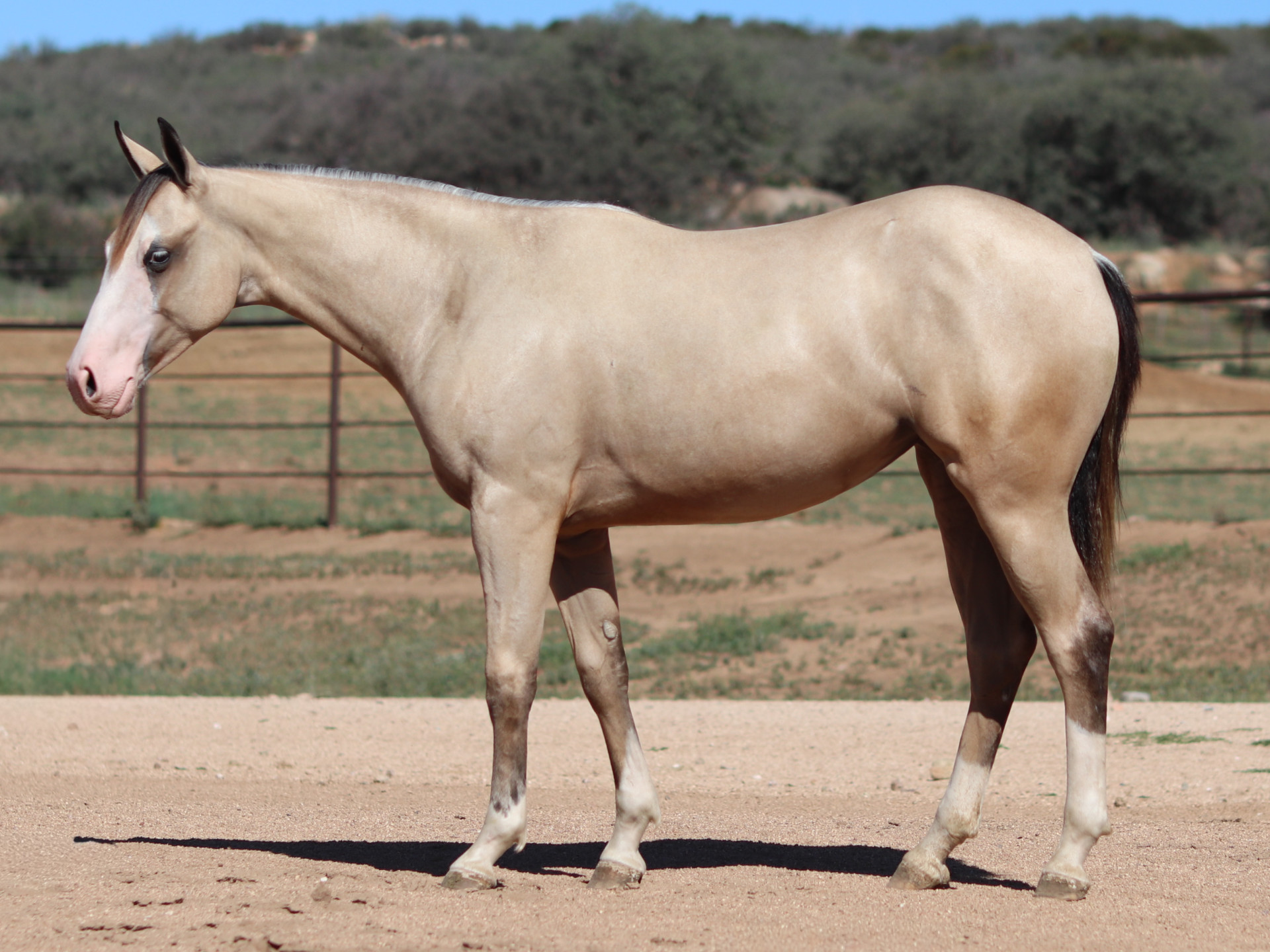 "Maybelline” is a gorgeous 2024 AQHA Buckskin filly that is going to be 15+ hands with all the shape to her.